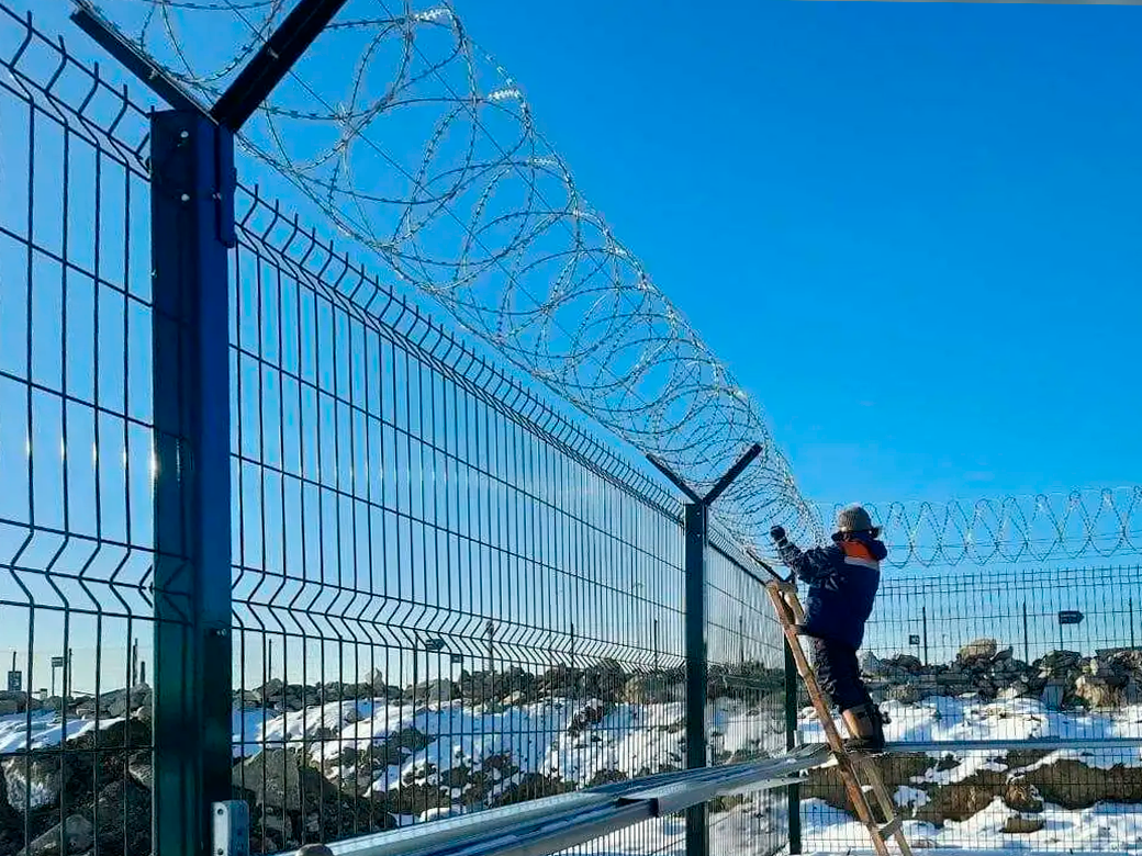 Зачищаем, грунтуем и красим металл для забора на производственной площадке.