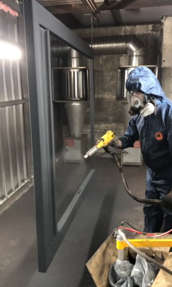 Электростатическое напыление порошковой краски в специальной камере. Равномерное покрытие всех